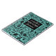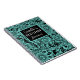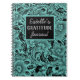 On a blue green teal backdrop are black sketched floral foilage for contrast along with a black square where you can personalise your journal.