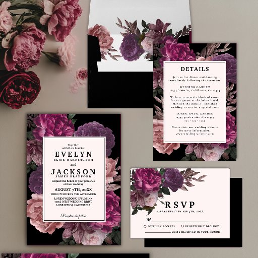 Dark moody watercolor floral Black weddingDesigned by Khushboo Asif