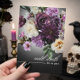 Unveil a touch of gothic romance with our captivating wedding invitations. Immerse yourselves in a world of dark elegance as a stunning floral bouquet takes centre stage. Lush roses, hydrangeas, and other blooms in enchanting hues of mauve, purple, lilac, white, and cream are artfully arranged, surrounded by a soft, ethereal white halo against a backdrop of dramatic black. The bouquet is brought to life with the intricate details of rich green foliage. Your wedding details are presented in mysterious vintage fonts, adding to the invitation's allure. This enchanting suite is perfect for the couple seeking a touch of moody sophistication, ensuring a truly unforgettable beginning to your love story. Created by Simply Farmhouse Press.