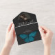 AVAILABLE WITH A QR CODE OR WITH OR WITHOUT DINNER CHOICE OPTIONS. This wedding invitation design features a dark, moody theme that is simple, yet stunning. A dark charcoal black background is the perfect canvas for your personal photo. A single teal blue moth sits on the back, its wings spread for flight. Unique and elegant, this design can be used for any season. Created by Simply Farmhouse Press.