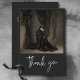 This wedding thank you card design features a dark, moody theme that is simple, yet stunning. A dark charcoal black background is the perfect canvas for your wedding photo. Unique and elegant, this design can be used for any season. Created by Simply Farmhouse Press.