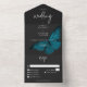 Dark Moody Minimal Teal Moth Dinner Wedding All In One Invitation