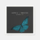 This wedding napkin design features a dark, moody theme that is simple, yet stunning. A dark charcoal black background is the perfect canvas for a single teal blue moth, its wings spread for flight. Unique and elegant, this design can be used for any season. Created by Simply Farmhouse Press.