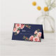 Dark moody pink and red roses navy blue wedding place card