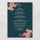 Dark moody pink and red roses teal wedding menu