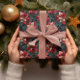Dark Moody Poinsettia Floral Winter Holiday Wrapping Paper
