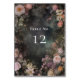 Dark Moody Romantic Floral Wedding Welcome Table Number