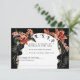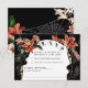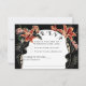 This RSVP card is perfect for those seeking a dark, unique style with an elegant twist. Set against a rich black background, the design features vibrant orange and pink lilies intertwined with lush greenery, creating a dramatic, sophisticated frame around the RSVP details. The vintage-inspired font adds a classic touch, while the playful wording options, "Will be there toasting" and "Will be toasting from afar," offer a lighthearted feel. Ideal for weddings or events with a gothic or vintage flair, this RSVP card is sure to stand out and set the tone for a memorable celebration.
