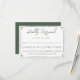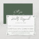 A simple and elegant calligraphy wedding RSVP card. That is dark moss green and white with hand drawn frame . Minimalist and chic with green typography .