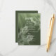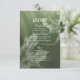 This fall wedding details card has a dark moss green colour theme featuring subtle monochromatic maple leaves accenting a flowing light to dark earthy green gradient - by katz_d_zynes