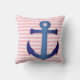 Dark Nautical Blue Anchor Pink Striped Stripes Cushion