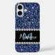 Dark Navy Blue Glitter & Gems, Name and Monogram Case-Mate iPhone Case