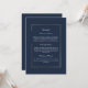 This navy blue background with a gold frame is an enclosure card provides all the details for your guests. All information is able to be customized and a QR code on the back is available to give your guests the ability to see more information on your website
