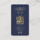 Modern Dark Navy Blue Professional Marketing Monogram business card with QR code and facebook and instagram icon