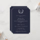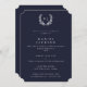 Dark Navy+White Monogram Laurel Wreath Graduation Invitation