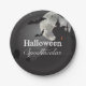 An eerie paper plate to set the mood for a fabulous Halloween party, this design features a haunted castle on a dark night with full moon and bats flying to and fro. This plate is available in two sizes. See the complete product description and select the size that best suits your needs. Happy Halloween!