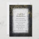 This romantic Poe - esque wedding invitation features a dark gothic background with pale flowers, vintage black lace, mysterious runes, and gold trim. Shown on champagne metallic paper for a little sparkle. Has subtle Halloween season flair.