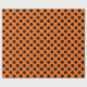 Dark orange background with black polka dots.