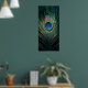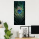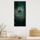 The light glitters off the dark peacock feather in this still life photography. The dark green background makes the eye of the peafowl feather look stunning.