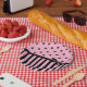 Dark Pink and Black Polka Dot Striped Paper Plate