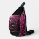 Dark pink faux glitter sparkles Black Monogram Sling Bag