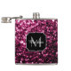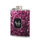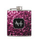 Dark Pink faux shiny glitter sparkles Monogram Hip Flask