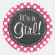 Dark Pink Polka Dots; Retro Chalkboard look Classic Round Sticker
