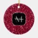 Dark pink red magenta faux sparkles Monogram Ceramic Tree Decoration