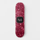 Dark pink red magenta faux sparkles Monogram Skateboard