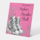 Pink Sneaker ball welcome table sign with pretty diamond sneakers and diamonds on a silver swirl background. This hot pink sneaker ball welcome sign is easily personalised for your event by simply adding your details. You can change the background and text colour.