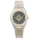 Stylish gold square and compass Masonic symbol personalised wrist watch with a dark plaid background.