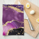 Dark Purple and Gold Glitter Sequins Agate Tea Towel