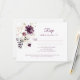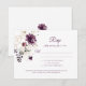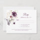 Elegant dark purple watercolor flowers over gold sketched floral outlines with added white flowers, and purple and green leaves RSVP. The back of the card is white with a single purple peony. There is a matching invitation available.
