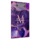 This clipboard features an elegant and glamourous dark purple and pink agate marble background with faux pink glitter accents. The monogram combines handwritten script and modern sans serif fonts for a classy and sophisticated look. This will make the ideal gift as it can be customised with a name and initial. The sequins and distressed texture creates the perfect blend of chic and grunge.