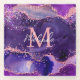 This coaster features an elegant and glamourous dark purple and pink agate marble background with faux pink glitter accents. The monogram combines handwritten script and modern sans serif fonts for a classy and sophisticated look. This will make the ideal gift as it can be customised with a name and initial. The sequins and distressed texture creates the perfect blend of chic and grunge.