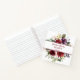 Elegant watercolor roses and peonies in dark purple and vibrant red with lush greenery. The text and back of the book are dark red. Perfect for a fall or winter wedding.
