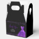 A beautiful dark purple themed elegant watercolor dress gown on a black background with faux glitter at the top and bottom of the favor box.