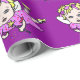 A beautiful hand drawn whimsical folk art style fairy with a pink dress gift wrap for a little girl's birthday. Purple, lavender blonde.