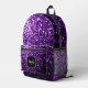 Dark purple glitter sparkles Monogram Printed Backpack. Cool fashion accessory bag for her. Beautiful girly glamourous shiny glitters sparkles design. Photo of sparkles, not real glitter! Create a unique and personalised backpack with a custom touch! Modern monogram with your initial and your name for that extra personal flair.