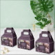 Elegant wedding favor boxes featuring a dark purple floral theme. The moody color palette is great for a fall wedding.