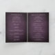 Elegant folded wedding program featuring a dark purple floral theme. The moody color palette is great for a fall wedding.