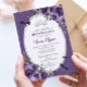 Dark Purple Floral Butterflies Silver Quinceañera Invitation