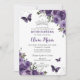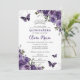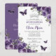 Dark Purple Floral Butterflies Silver Quinceañera Invitation