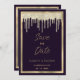 Dark purple gold luxury glitter drip Save the Date Invitation
