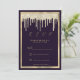 Dark purple gold luxury glitter drips RSVP Invitation
