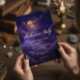 Announce your party under the glow of a magical night. Our enchanting Halloween party invitation features a captivating dark sky, painted in deep, moody purples. Wispy clouds shimmer with a touch of faux gold, catching the soft light of a magnificent full moon. The ethereal scene sets the stage for your night, inviting your guests to celebrate under the watchful gaze of the moon. Your party details are showcased in vintage fonts, ensuring they stand out beautifully against the dramatic backdrop. Created by Simply Farmhouse Press.