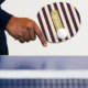 Dark Purple Gold Stripe Pattern Custom Name Ping Pong Paddle