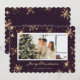 Modern dark blue photo Merry Christmas card featuring snowflakes.