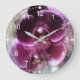 Two beautiful, fully open dark purple Phalaenopsis, moth orchids.