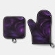 Dark Purple Swirl Design Oven Mitt & Pot Holder Set